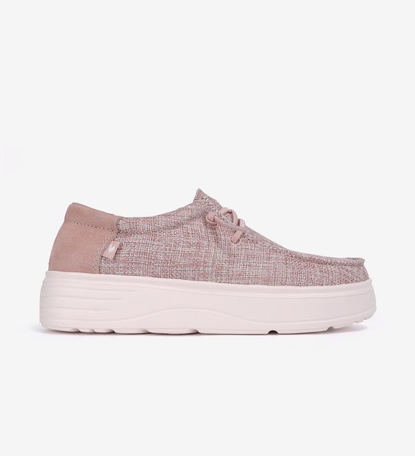 Le modèle Robin en rose pour femme est une chaussure de type wallabi. Confectionnée avec un mélange de coton et de cuir suédé, elle offre durabilité et un style moderne....