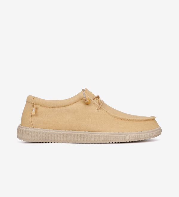 Coupe Wallabi en textile recyclé de bouteilles en PET avec talons en NOBUCK. Très faciles à enfiler et à retirer grâce à leurs lacets élastiques. Dotées d'une semelle intérieure Confort...